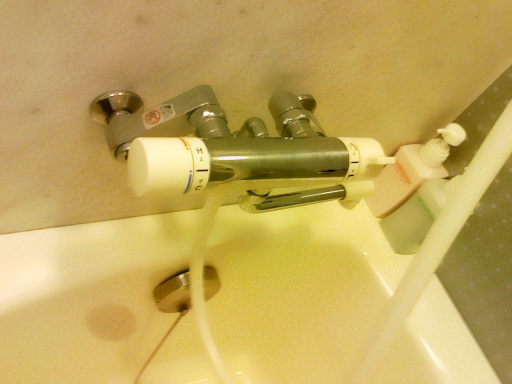 ちなみに、なぜかこの「ユニバーサルルーム」だけ、風呂場の混合水栓がサーモスタット式になっていました。他の部屋もこれにすれば良かったのに。