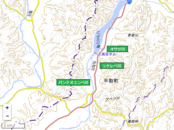 二風谷の南、小平の西のあたりを流れる沙流川の西支流の名前です。今回は、取材班の出番も無いままに、戊午日誌「東部沙留志」行ってみましょう。