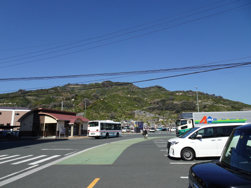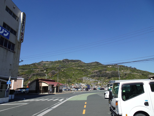 フェリーターミナルの北側にも入り江が広がっているのですが、間に道の駅の駐車場があるのでその姿を見ることはできません。入り江の北には「権現山」という山があり、頂上付近にはアンテナが立ち並んでいます。南斜面はほとんど畑になっているみたいですね。