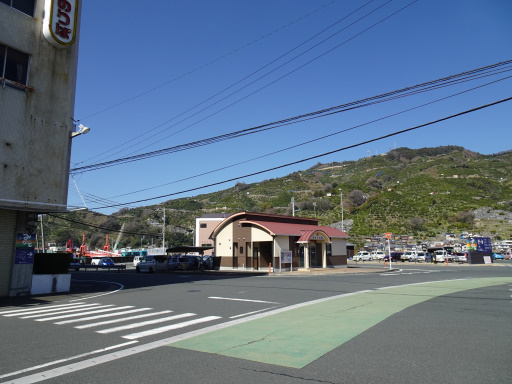フェリーターミナルの隣には交番があり、更に道路を横断すると道の駅の駐車場です。