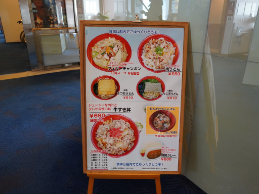 https://www.orange-ferry.co.jp/ship_guide/pdf/orange_kyushu.pdf を見ると位置関係が掴みやすいのですが、売店と軽食コーナーがびみょうに離れているのが面白いところですね。