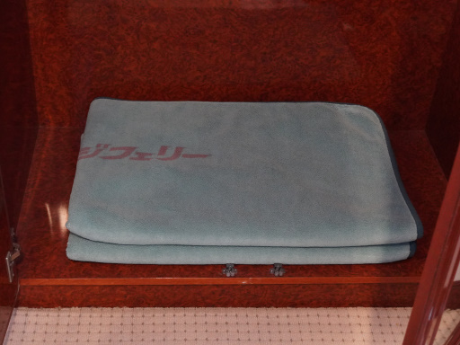 あ、違いますね。毛布でしたね(汗)。「オレンジフェリー」のロゴ入りの毛布が置かれていました。