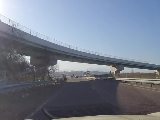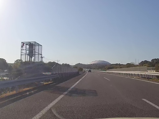 大野川と乙津川を渡って、「大分松岡 PA」まであと 1 km の地点にやってきました。奥に見えるドームは「昭和電工ドーム大分」こと「大分スポーツ公園総合競技場」みたいですね。