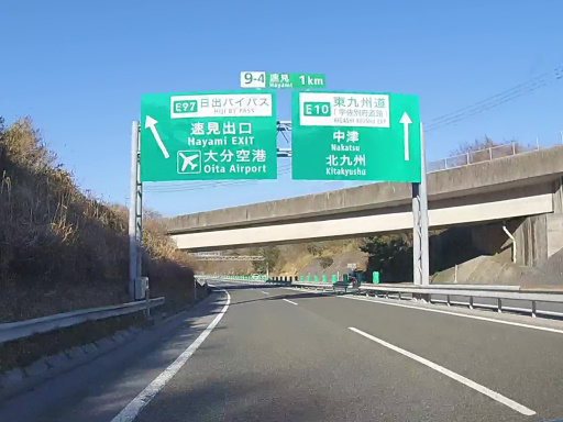 枝番「9-4」を持つ「速水 IC」が近づいてきました。ここは IC ですが、大分空港に向かう「日出バイパス」が直結しています。