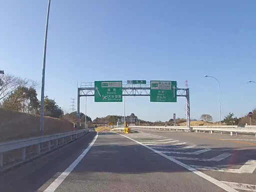 日出 JCT. は……ジャンクションには多いのですが……準直結 Y 型のレイアウトです。そのためどのルートも 270 度左カーブを強いられることはありません。IC とは違って料金所が存在しないので、減速が必要な要素を少なくしている、ということなんでしょうね。