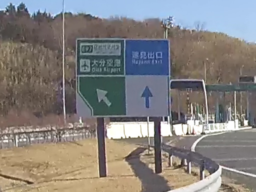元々は単なるインターチェンジだったところに、大分空港に向かう「日出バイパス」とのジャンクションとしての機能を後付けしてしまったために、この IC は若干レイアウトが複雑になっています。「日出バイパスはグリーン車線へ」とあるのが要注意ポイントです。
