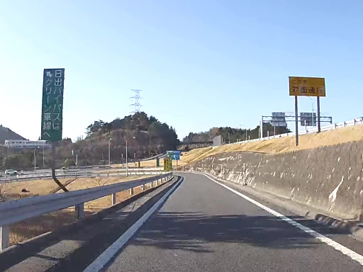 ETC ゲートをあっさり通過して、日出バイパスに入ります。あ、料金所ブースの間は地下道で移動するようになっているんですね。