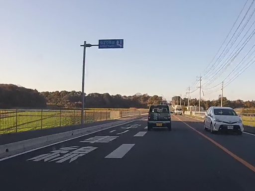 段丘を越えて、今度は坂を下って平地に戻ってきました。右側が昔からの市街地で、左側はバイパス沿いのような感じで各種チェーン店が並んでいます。ここを左折すれば「弥生のムラ」へ行けるとのこと。