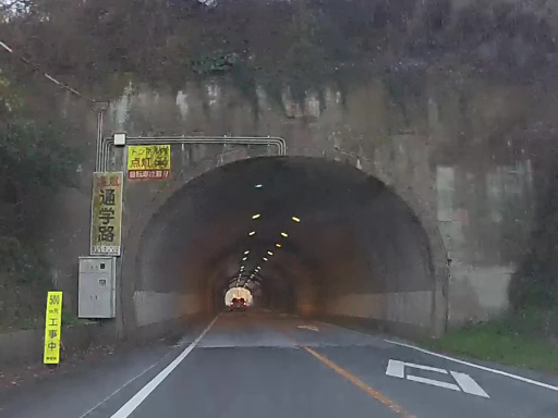 上り坂の途中で、左側に廃トンネルが見えてきました。旧道のトンネルですが、今は閉鎖されて通行できなくなっているようです。現道は海側をオープンカットで抜けているため、トンネルは存在しません。