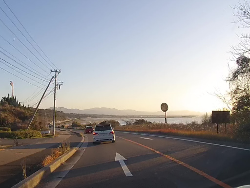 引き続き国道 213 号を宇佐方面に向かいます。豊後高田市堅来(かたく)を過ぎて、尾根を横切る峠を越えて坂を下っていたところ……