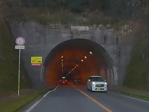 そう、これまでトンネル入口の手前に必ずあった「⑯」という番号表示が無いのです。どうやらこれが国道 213 号の最後のトンネルらしいのですが、ナンバリングが無いのは寂しいですね……。ちなみに国道 213 号の「最初のトンネル」は杵築市内にあるようで、ここもナンバリングの対象外です。