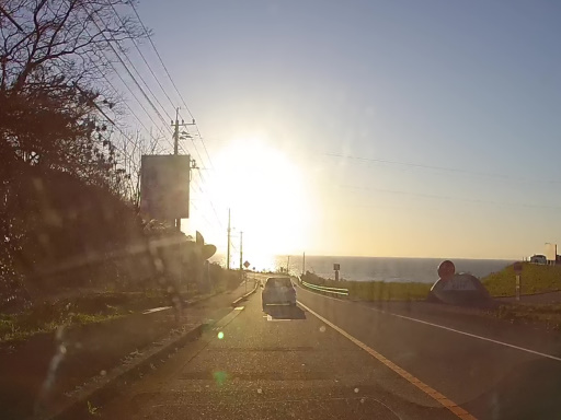 ここに来て、ようやく国道 213 号は南西に向かうことが増えてきました。西日の直撃も減りそうです。
