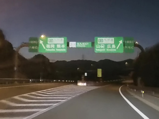 「新門司 IC」を抜けたばかりなのに、もう「門司 IC」の案内が……と思ったのですが、そう言えば新門司 IC はハーフ IC だったんでしたね。本州方面に向かうには門司 IC に向かうしか無い、ということだったようです。