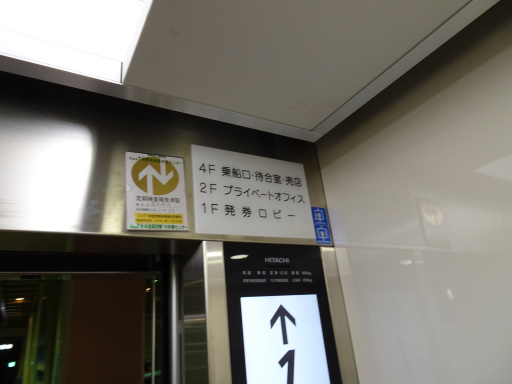 エレベーターで阪九フェリーの新門司港第 1 フェリーターミナルの 4F に向かいます。