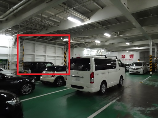 阪九フェリー「やまと」は、予定通りに泉大津港フェリーターミナルに到着しました。ということで、車輌甲板に向かいます。