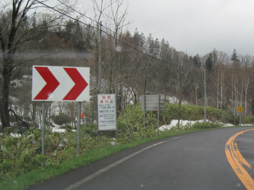 長い冬が終わった後ということもあってか、路面の状態はあまり良いとは思えなかったのですが、ついに「凸凹あり」の警告標識が出てきました。路面の状態が決して良くないのは通年の話だったんですね……。