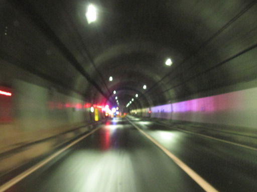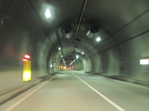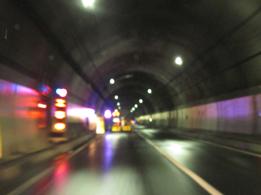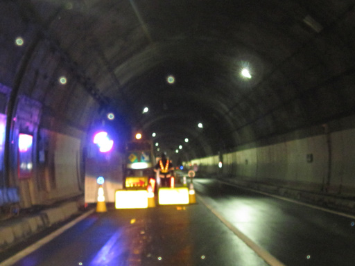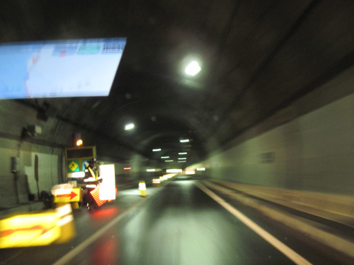 残念ながらボケてしまっていますが、左側の電光掲示板には「工事中」と出ているようです。なんとトンネル内の一部区間だけ片側交互通行にして工事をしているみたいですね。