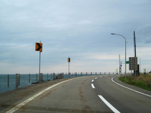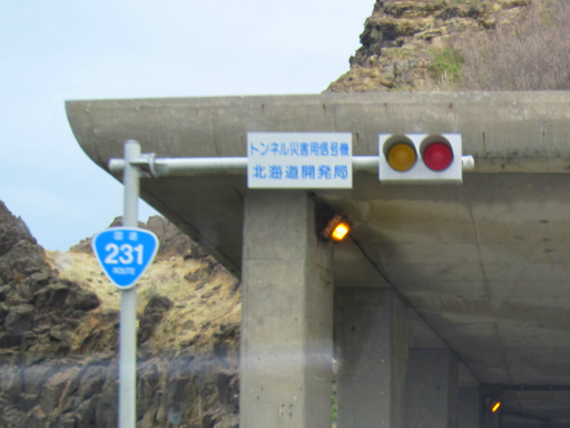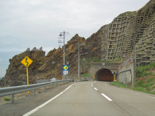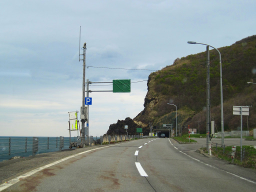 トンネルを抜けると海沿いを右に曲がります。国道 231 号(および国道 232 号)では何度も見かける風景ですね。