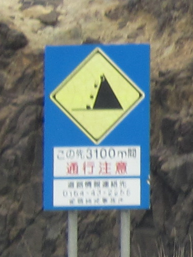 しかも手前には「この先 3100 m 間 通行注意」と出ています。黒岩トンネルの入口から 3.1 km 先は「日方泊トンネル」のど真ん中なのですが、旧道だと日方泊川を渡るあたりのようですね。日方泊川の先の旧道も崖の下を通っていて、落石や土砂災害の危険が多そうなところでしたが……。