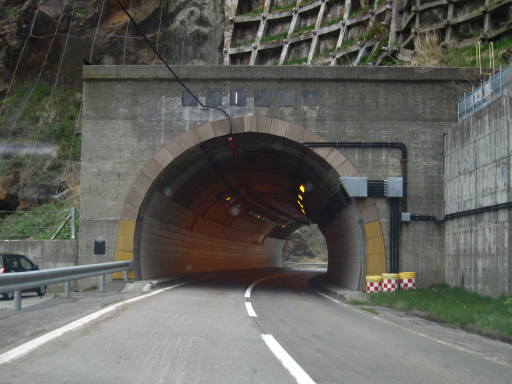 「日和トンネル」の左奥に見えていたのが、湯泊岬の下を抜ける「湯泊トンネル」です。「日和トンネル」は土砂災害対策と線形改良で比較的近年に建設されたように見受けられますが、こちらは結構昔からあるような佇まいですね。