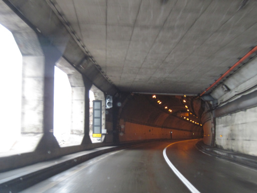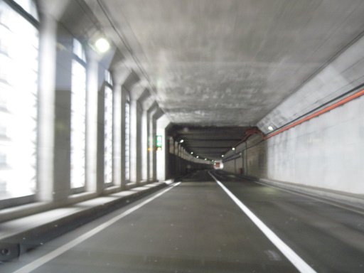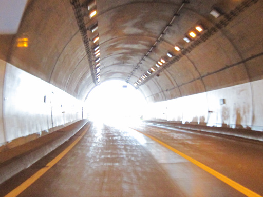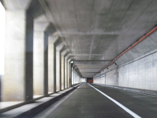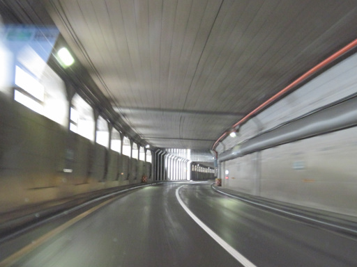 出口ではなく、覆道の壁のない区間でした。でも、こうやって光が入るのが覆道の良いところですよね。防風雪目的の覆道だったらそういう訳にも行きませんが……。
