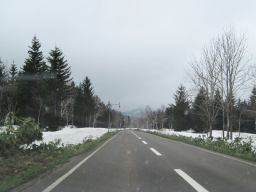 5 月に雪が残っているというのも北海道ならではですが、これだけ雪が見えるということは、樹木がそれほど多くないということでもあるんですよね。これは農地を開拓するために原野が切り拓かれた……ということかと思うのですが、開拓の際の労苦を思うと、いろいろと考えさせられますね。