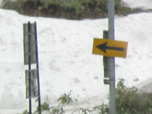 この曲線半径 80 m の左カーブは随分と深いもので、180 度(と少し)進行方向が変わります。ですので左カーブである旨の反射板などが設置されているのですが……