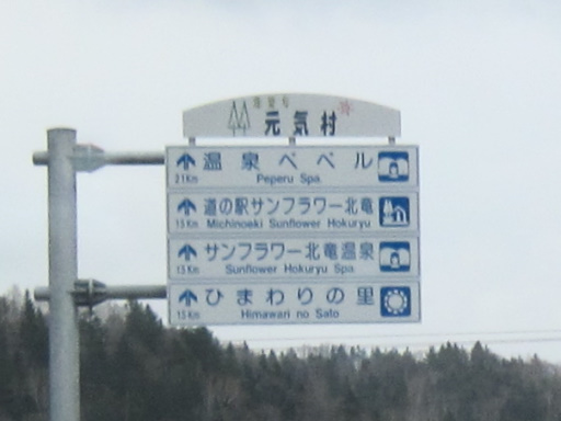 雨竜郡のあたりで良く見かける各種施設への案内が出ていますが、もちろん左折を促すものは一つもありません。