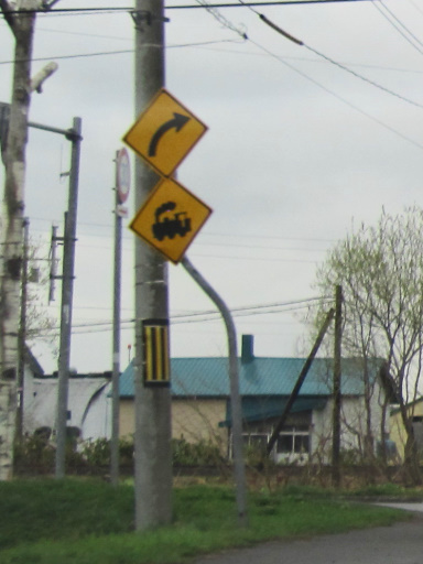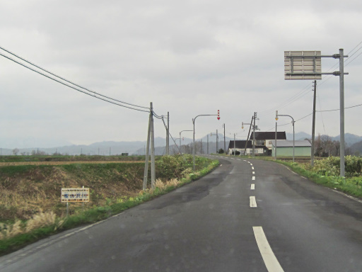 幌新太刀別川(かつての「エピショマㇷ゚」)を渡ると、今度は道道 1007 号「恵比島旭町線」が接続する交叉点です。道道 1007 号を走ったほうが、道道 867 号「達布石狩沼田停車場線」を走るよりも石狩沼田駅に早くたどり着けるのですが、まぁそれは良いとして……。