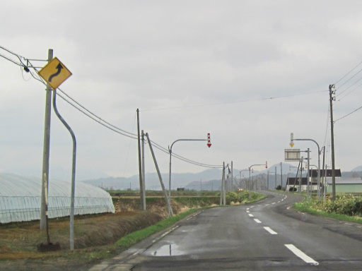 道道 549 号「峠下沼田線」を北に向かっていますが……お、これは良い(?)S 字カーブが。このあたりの道路も北海道らしく碁盤の目状になっているのですが、何故かズレが生じたようです。