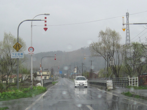 「下記念別沢川」の「下記念橋」を渡ります。この先は達布集落の中心部ということで、制限速度も 40 km/h まで下がるようです。