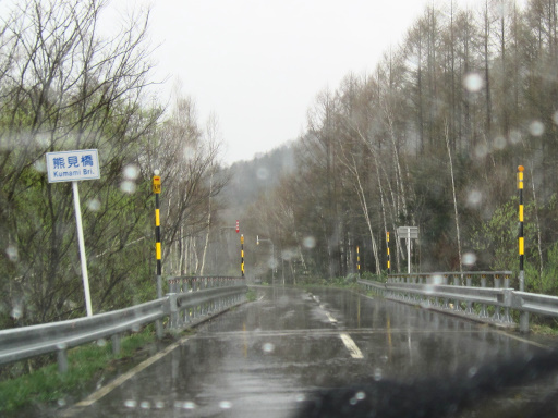 「熊見橋」という橋にやってきました。何の変哲もない橋ですが、欄干が金属製でちょっと変わった形をしているような気もします(単に塗装のせいかも)。幅も割とギリギリいっぱいな感じですね。