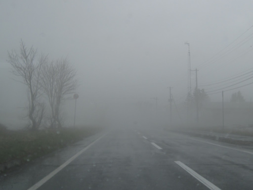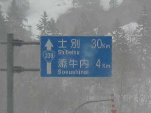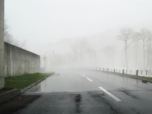 「霧立峠」は苫前と幌加内町添牛内の間の峠ですが、苫前町に属する区間が 46 km 近くあるのに対し、霧立峠から幌加内町添牛内まではわずか 8.2 km ほどしかありません。Google さんも 8.2 km を約 8 分で走破できると言っていますが、そうか、50 km/h 制限は霧立峠まででしたね。