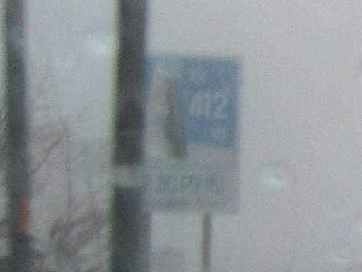 国道 239 号の「霧立峠」を越えて幌加内町に入りました。カントリーサインもぼんやりとしてしまって残念な感じですが、「412」の文字が見えますね。これは「-41.2 ℃」を記念したモニュメントのイラスト……でしょうか?